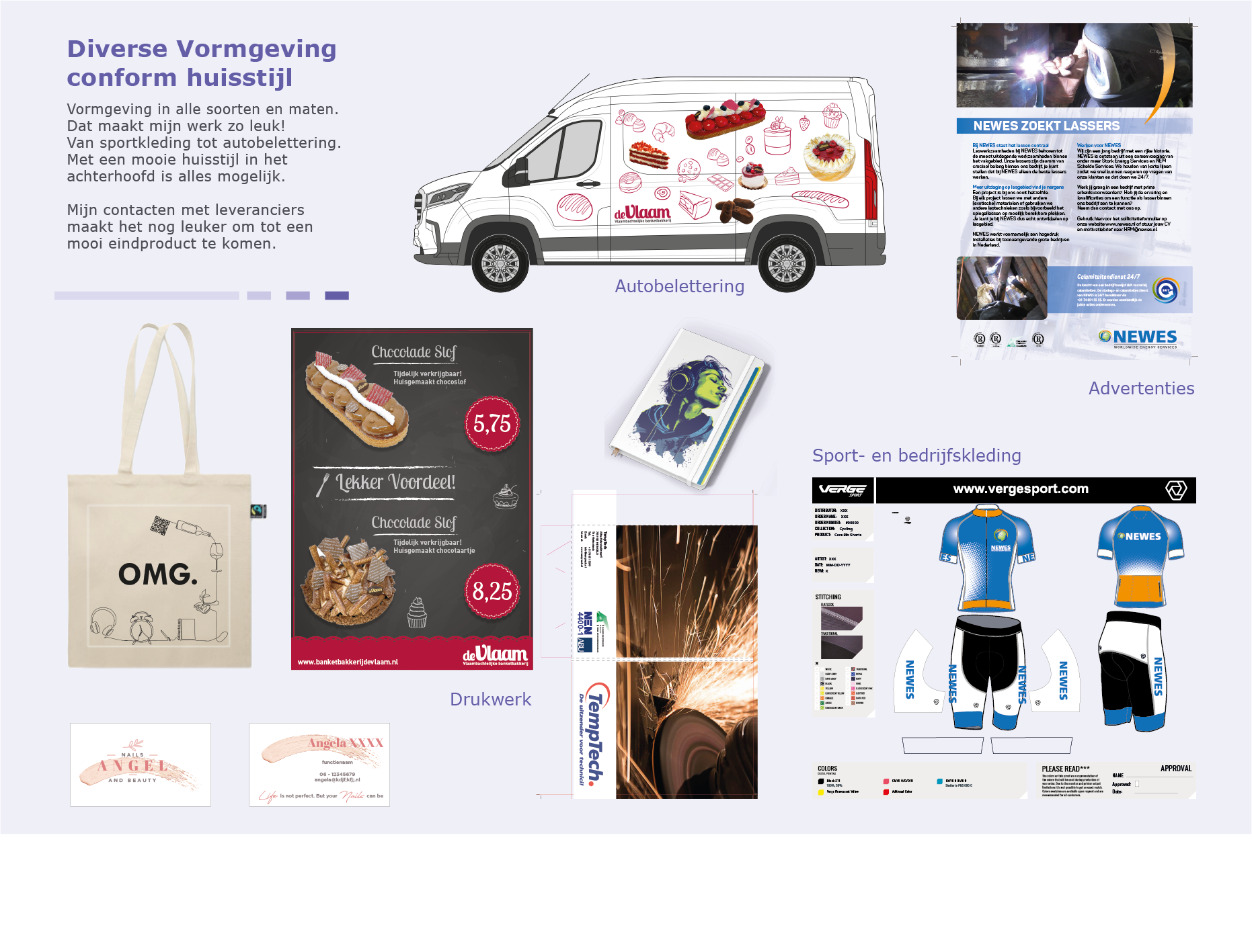 Welkom bij mijn projecten portfolio! Hier vind je een verzameling van diverse ontwerpen die ik heb gemaakt voor verschillende bedrijven, elk conform aan hun eigen huisstijl.